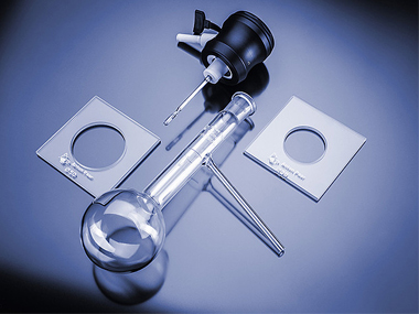 為提高該儀器的易用性,并使操作員獲得完美體驗,蒸發(fā)溫度傳感器搭配了燒瓶定位支架。多功能蒸餾瓶塞具有兩種可選類型:堅實的金屬材質(zhì)溫度傳感器或玻璃材質(zhì)的傳感器。只用一只手就可在幾秒內(nèi)將蒸餾燒瓶(125 mL 或 200 mL)安裝到正確的位置。