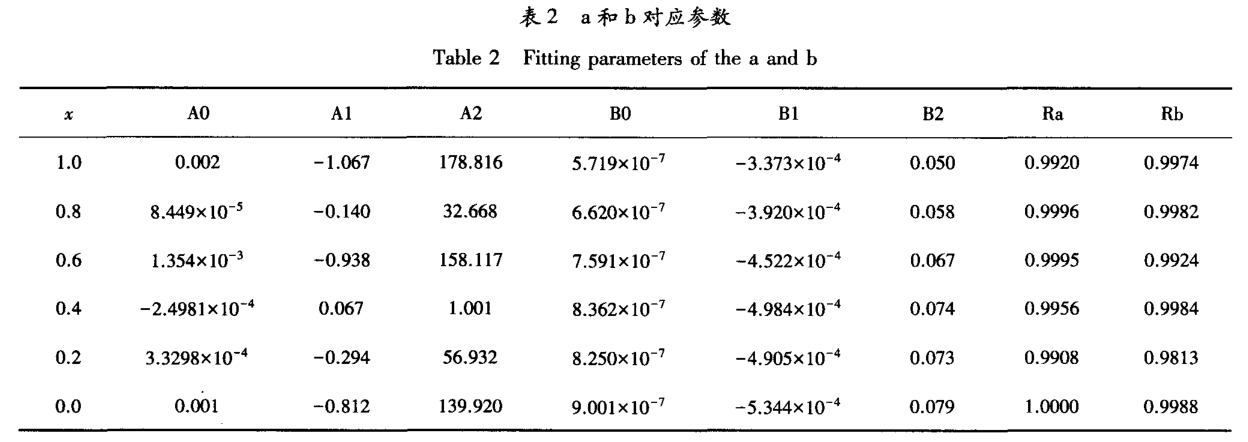 [18]中的計(jì)算方法,得到a,b相關(guān)參數(shù) ,如表 2所示。