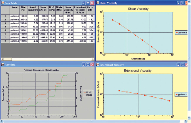 • 評估工藝流程中的擠出行為,例如注塑成型,熱熔體擠出成型等