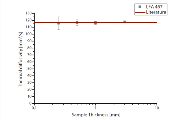LFA 467:不論樣品的厚薄程度,測試得到的銅樣品的熱擴散系數(shù)與理論值都十分吻合