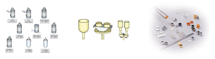 STA 449 F3 提供多種不同材質的坩堝,如氧化鋁,白金,鋁,石墨,石英等。對于每種坩堝均提供多種不同的尺寸規(guī)格。