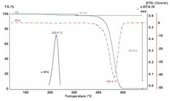 可選的 c-DTA®功能不僅適用于儀器的溫度校正,而且在熱重測量的同時(shí)提供了關(guān)于樣品熱效應(yīng)(包括帶質(zhì)量變化的揮發(fā)、分解與不帶質(zhì)量變化的熔融、玻璃化轉(zhuǎn)變等)的重要信息。