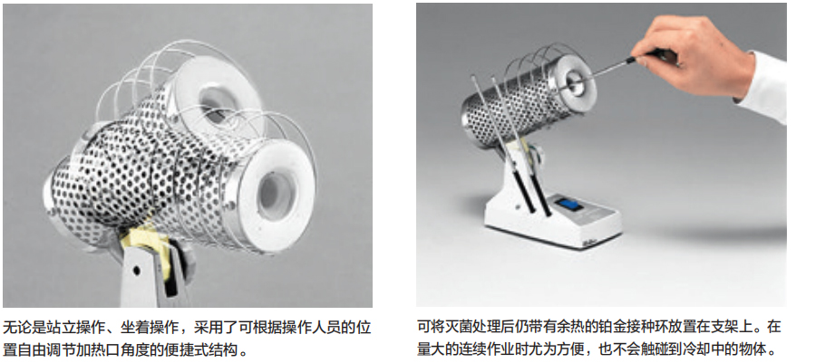 ②發(fā)熱量只有氣體燃燒滅菌的1/6,在安全柜和罩內(nèi)也可 進(jìn)行操作。