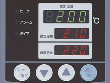 自診斷回路(溫度傳感異常、加熱器斷線、自動(dòng)過升防止、SSR短路)、過升防止器、過電流漏電保護(hù)開關(guān)、按鍵鎖功能 |