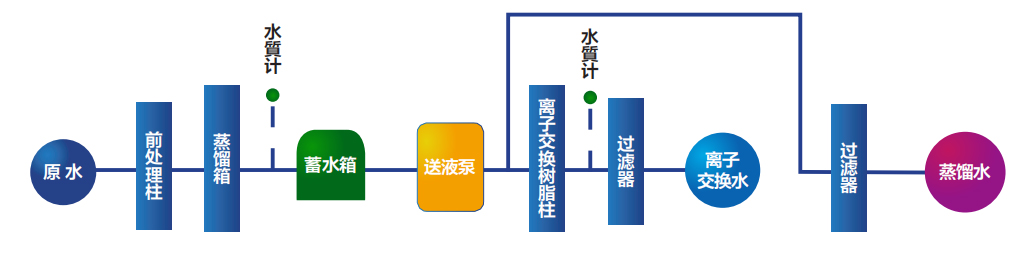 前處理柱→蒸餾→離子交換→過(guò)濾 |